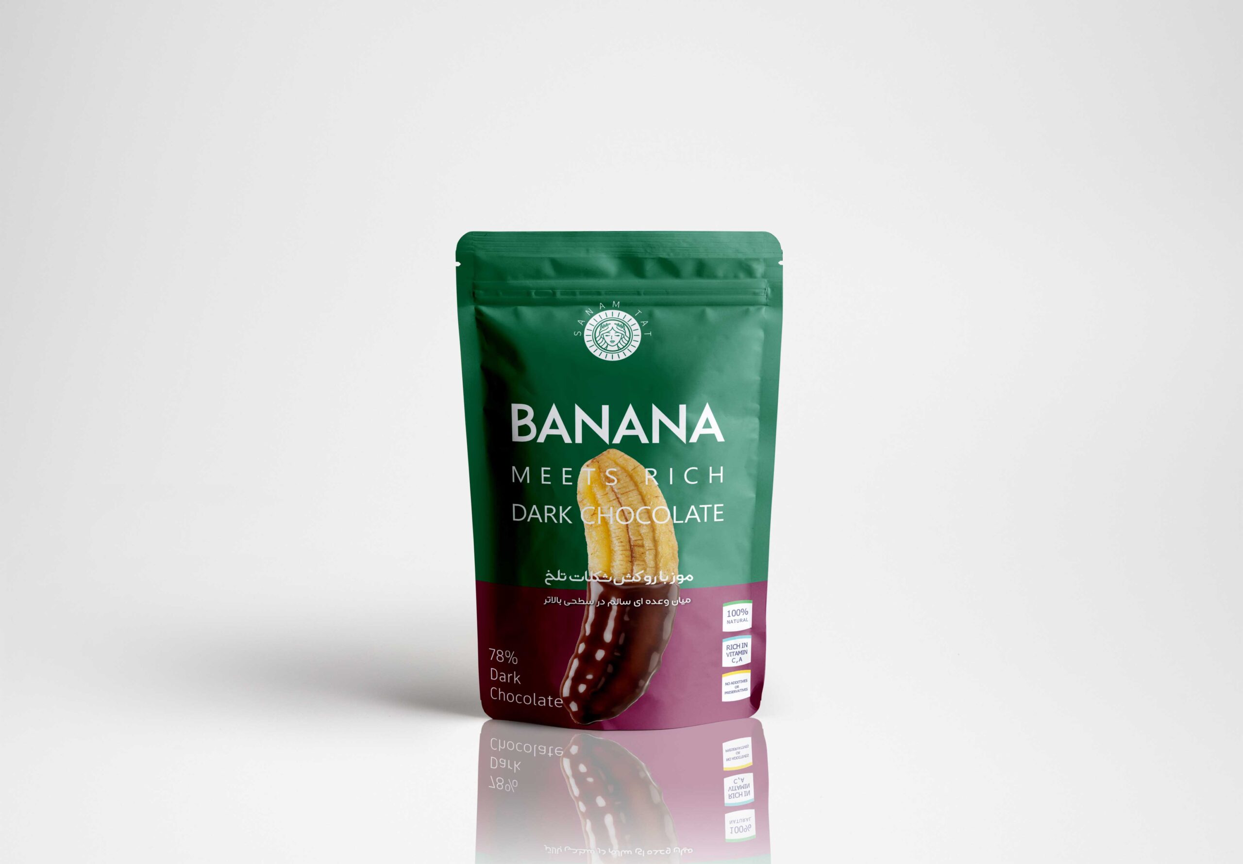 تکههای موز خشک با روکش شکلات تلخ ,غنی از پتاسیم، فیبر و انرژی طبیعی ,شیرین، طبیعی و بدون نگهدارنده |
